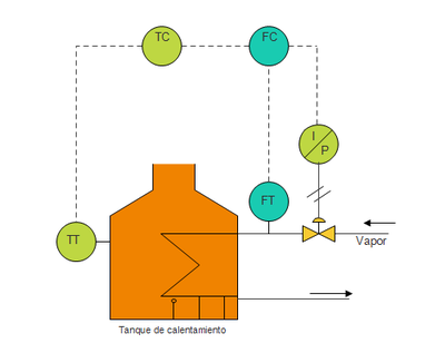 Durante un taller de clase, un compañero termina un ejercicio y pasa al tablero a realizarlo. El ejercicio consiste en plantear el lazo de control de cascada para un proceso que consiste en un intercambiador de calor. Él dibuja el lazo y el resultado es el que se ilustra en la imagen.