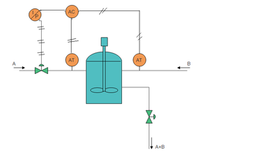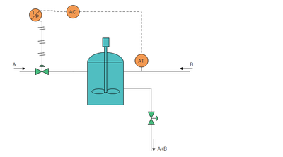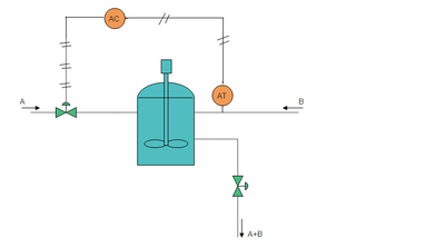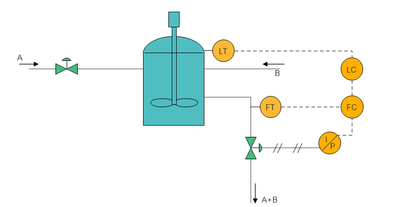 En la imagen se ilustra un proceso donde se tiene un tanque de mezclado y se desea controlar la altura o nivel dentro de él. El lazo de control que se presenta es de tipo [blank_start]cascada[blank_end]