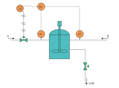 Para el siguiente tanque de mezclado se desea controlar la composición dentro del tanque. Se proponen diferentes circuitos de lazo de control, realice el lazo de control de razón o relación y seleccione el correcto