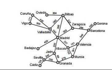 a) Determina el camino mínimo para ir de Barcelona a Sevilla [blank_start].[blank_end]