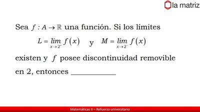 Grupo La Matriz Test tipo control I del curso Matemáticas II - Compartido para los estudiantes del refuerzo universitario