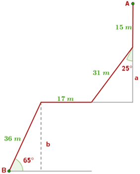 Para medir la profundidad de una cueva, los espeleólogos utilizan un carrete de hilo. Van soltando hilo y miden la longitud y el ángulo que forma el hilo con la horizontal. ¿A qué profundidad se encontrará un espeleólogo que se encuentre en el punto B?