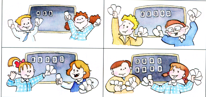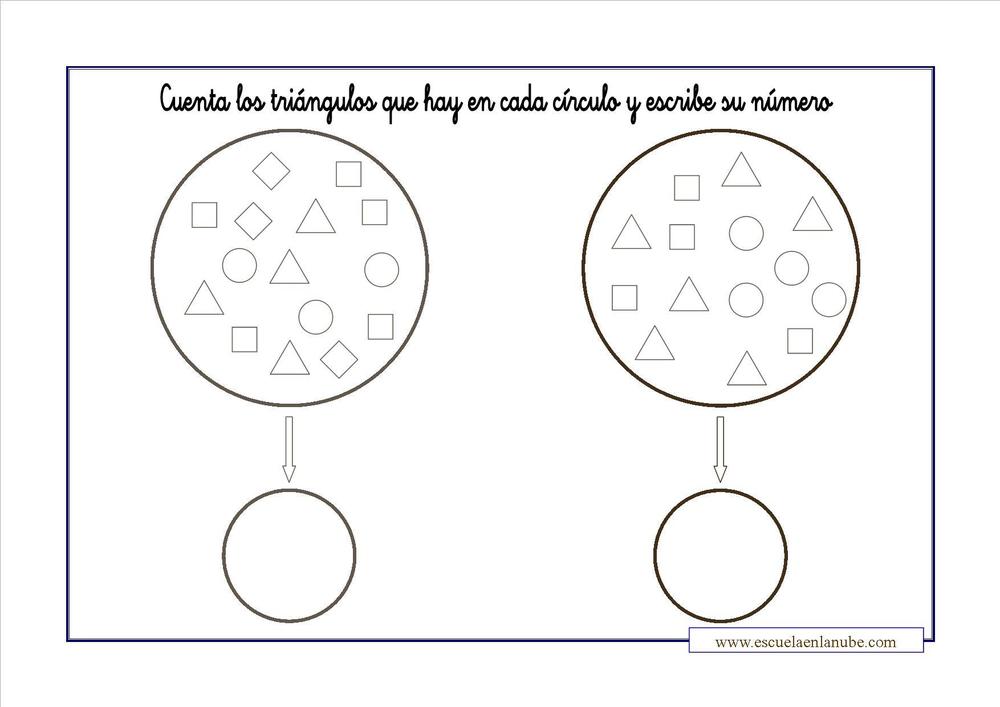 Cuenta los triángulos de cada círculo y selecciona la respuesta correcta en cada caso.
