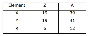 L’element R té 6 protons, 6 neutrons i 6 electrons.