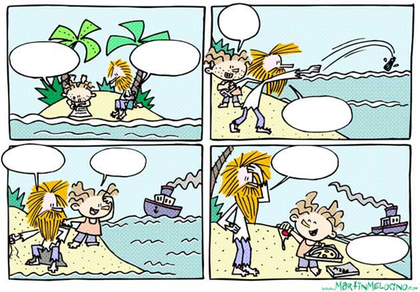Arrastra los textos hasta los bocadillos que correspondan, de acuerdo con la secuencia de imágenes que se presentan.