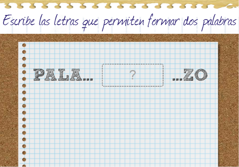 Escribe las letras que hacen falta para formar una nueva palabra, uniendo las letras de la izquierda o de la derecha.