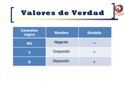 Una tabla de verdad, o tabla de valores de verdad, es una tabla que muestra el valor de verdad de una proposición compuesta, para cada combinación de valores de verdad que se pueda asignar a sus componentes.