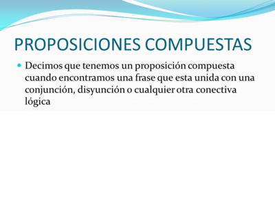 Proposiciones Compuestas (Disyunción, Conjunción, Negación, Condicional, Bicondicional).