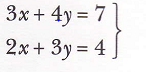 El siguiente sistema de ecuaciones (igualación) tiene por solución