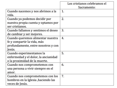 1.Confirmación; 2.Bautismo; 3.Penitencia; 4.Eucaristía;