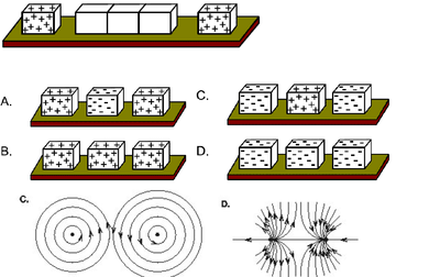bloques cargados positivamente. La gráfica que ilustra las cargas que quedan en los bloques es