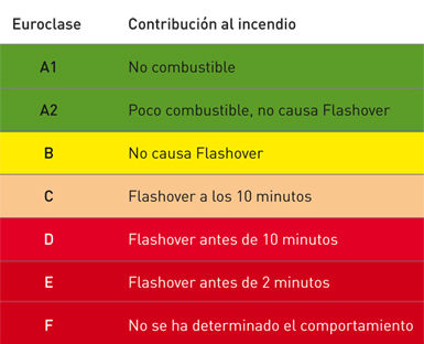 Según Euroclases. Un material de construcción será clasificado como A2 cuando tenga una contribución al fuego con una duración de la llama menor o igual a:
