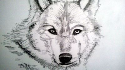 Cynthia (draw) [blank_start]has drawn[blank_end] the picture of a wolf.