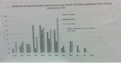 Al observar la siguiente curva epidémica para Hantavirus en su variedad de síndrome cardiopulmonar (SCPH) en Chile, para Ud. puede asegurar que: