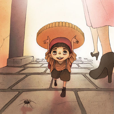 Un niño tímido que suele salir en ocasiones con sus padres y un día es tragado por un buey