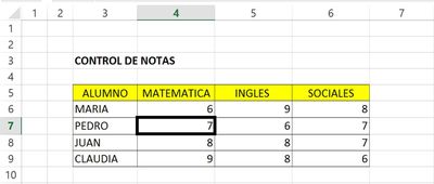 En el informe que se muestra es necesario ingresar los datos de otro estudiante en la posición donde se encuentra la celda actual. ¿Cuál opción seleccionarías para insertar el espacio necesario para digitar esa información?