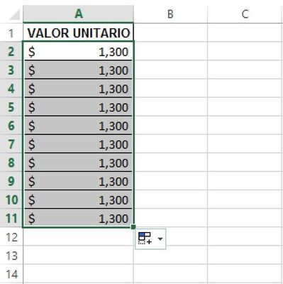 En la imagen observará que se aplico un auto-rrelleno en dicha columna; pero al finalizar el proceso se activa un botón ¿Cuál es el nombre de dicho botón?