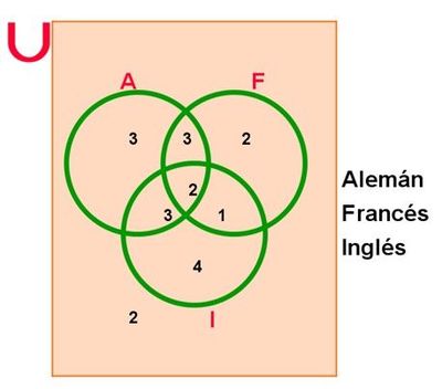 Cuántos estudiantes en total estudian 2 de los 3 idiomas?