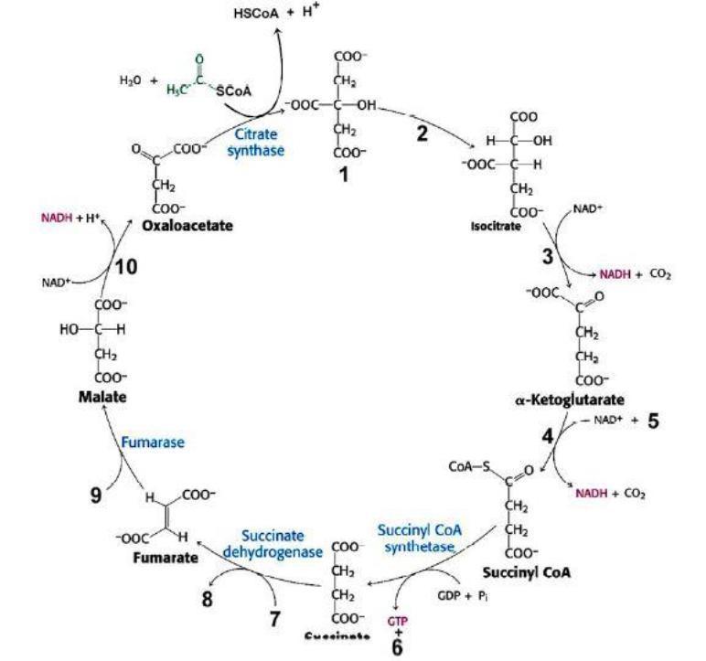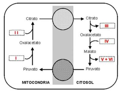 I=NADH II=NADH III= Acetil-CoA IV=citrato V=NADPH