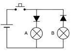 En el circuito de la figura, indique qué lámparas se encenderían cuando se accione el pulsador.