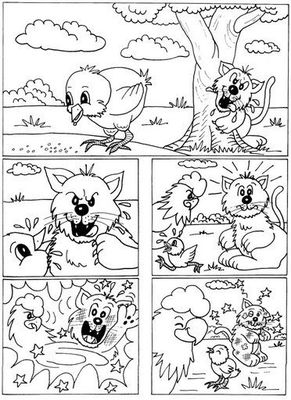 El gato está muy dolido porque no pudo convencer al pollito de ser su amigo