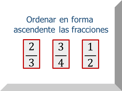 Ordene de forma ascedentemente las siguientes fracciones, siendo 1 la menor de todas y 3 la mayor.