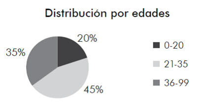 En cierto país, una persona es considerada joven si su edad es menor o igual a 30 años. El siguiente diagrama muestra la distribución de las edades para ese país. De acuerdo con el diagrama, ¿es correcto afirmar que la mayoría de la población de ese país es joven?