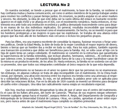 ideas solo recientemente vinculadas al matrimonio y a la familia.