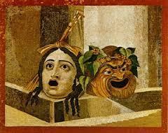 Las máscaras en el teatro griego tenían doble función: amplificar la voz de los actores y permitir que un mismo personaje representase en la misma obra más de un papel.