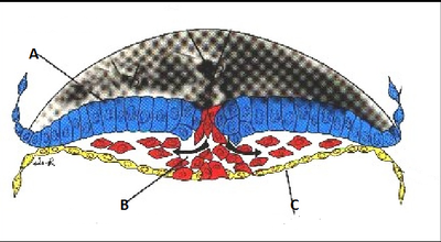 A) MESODERMO, B) ENDODERMO, ECTODERMO