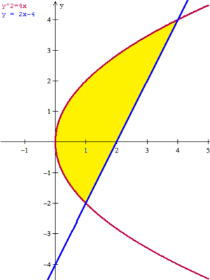 Hallar el área de la región limitada por la parábola y2=4x y la recta y=2x-4