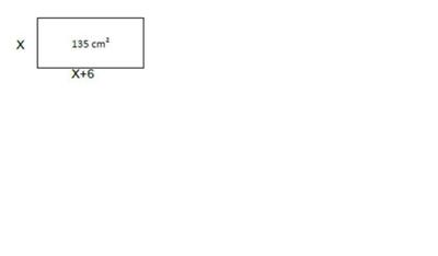 Una fábrica de papel realizará tarjetas publicitarias en forma rectangular de 135 cm2 de área, de tal forma que el largo del rectángulo es de 6 cm mayor que el ancho. ¿Cuál es el valor del ancho de la tarjeta?