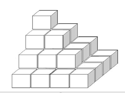 La pirámide está formada con cubos iguales superpuestos. La expresión que permite encontrar el número total de cubos es: