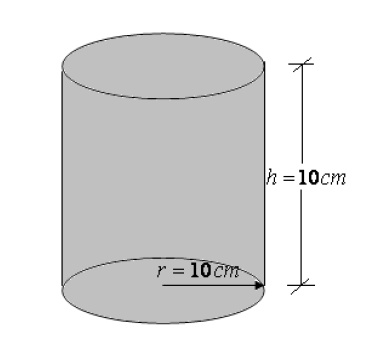 La figura representa un recipiente cilíndrico con las dimensiones dadas. La densidad