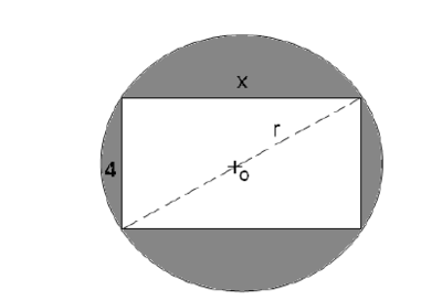 Un rectángulo de largo x y de ancho 4, está inscrito en un círculo. El área sombreada,