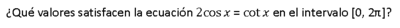 ¿Qué valores satisfacen la ecuación = en el intervalo *0, 2π+?
