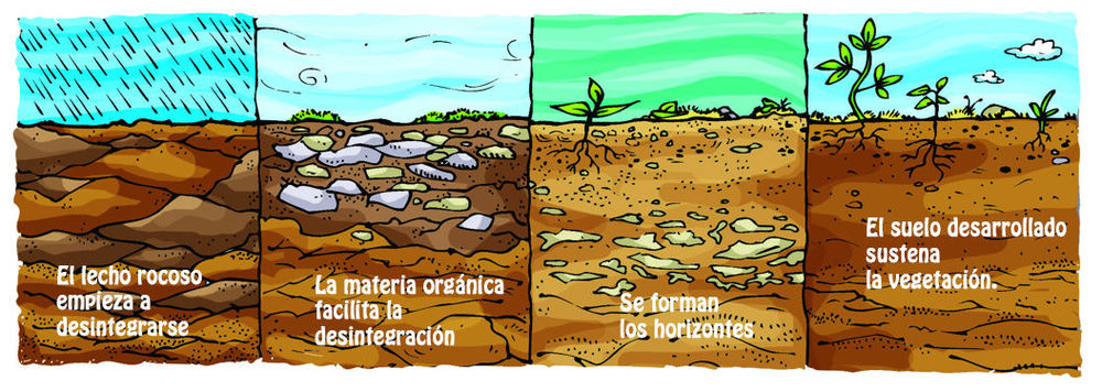 El proceso de formación de los suelos es un fenómeno que ocurre a veces y, por lo tanto, siempre llega a completarse, pues cada región posee las mismas rocas y fenómenos climáticos iguales.