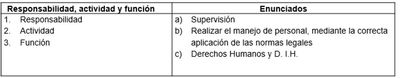Efectivos, reemplazos, disciplina ley y orden, prisioneros de guerra, registro de sepulturas, moral y servicios de personal, procedimientos de personal, manejo del interior, derechos humanos, servidores públicos y derecho internacional humanitario.