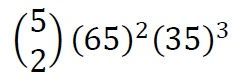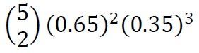En un complejo educativo, el 65% de la población es del nivel de educación básica. En una mañana de clases, cinco estudiantes se encontraban en la biblioteca, ¿cuál es la expresión que representa la probabilidad de que dos de los estudiantes sean de bachillerato?