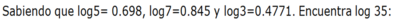 Identifica cuál es la mantisa del siguiente logaritmo log500=2.698970