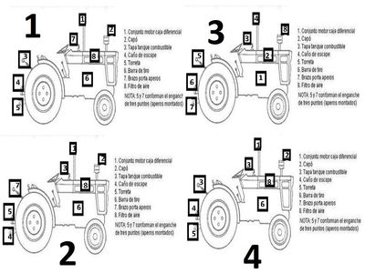 ¿Cuál de las siguientes figuras representa de forma correcta las partes del tractor?