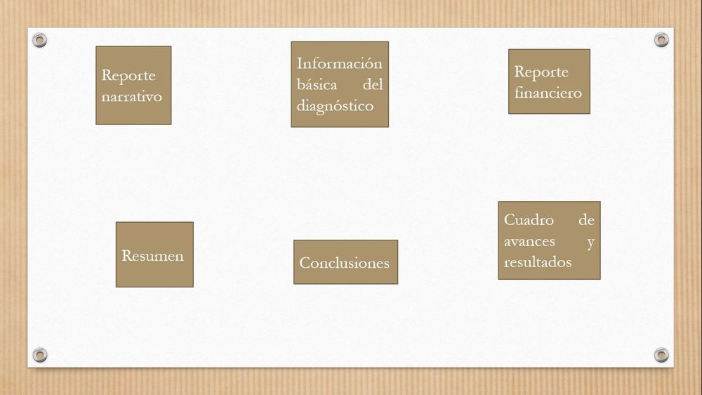 Reporte narrativo es [blank_start]describir[blank_end] en forma [blank_start]cualitativa[blank_end] los avances o [blank_start]resultados[blank_end] del diagnóstico