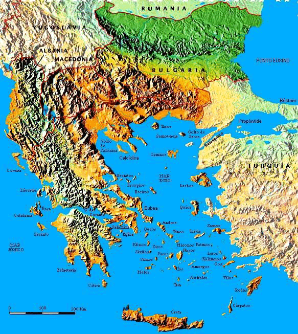 El siguiente mapa es de Grecia, con sus características geográficas. ¿Cuál de las siguientes alternativas representa lo identificado con el punto naranjo?