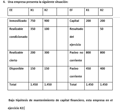 Bajo hipótesis de mantenimiento de capital financiero, esta empresa en el ejercicio X2:
