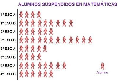 La imagen corresponde a un gráfico de pictograma y se utiliza con dibujos alusivos al carácter que se está estudiando y cuyo tamaño es proporcional a la frecuencia que representan; dicha frecuencia se suele representar.