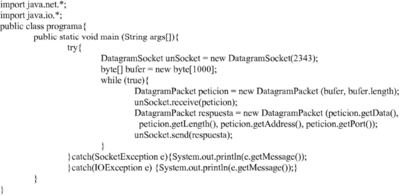 Un servidor UDP recibiendo peticiones y devolviéndolas al cliente de forma repetitiva.