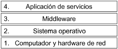 En la figura siguiente se presentan las capas de servicio software y hardware en los sistemas distribuidos.