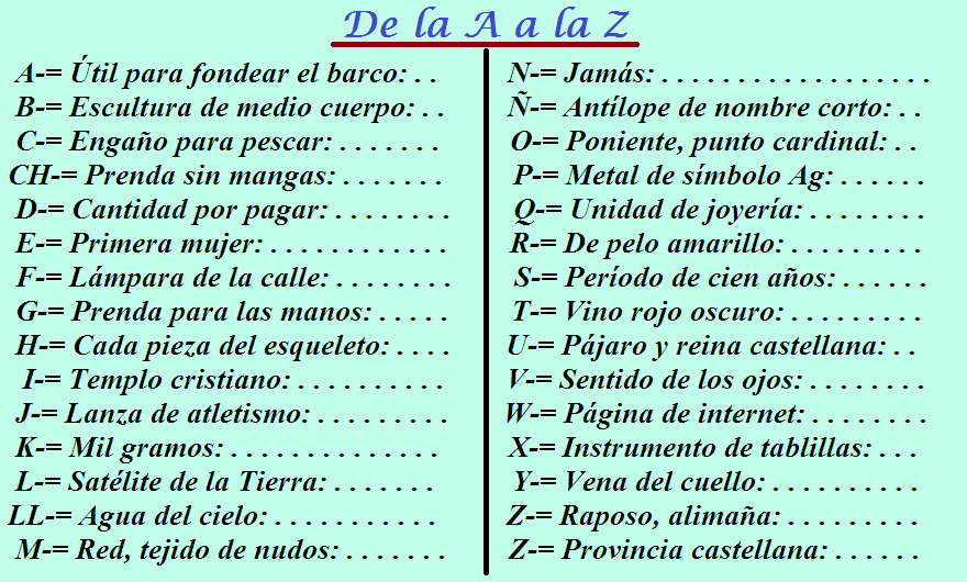 PALABRAS de 3 LETRAS. [De la A– a la Z–] ...