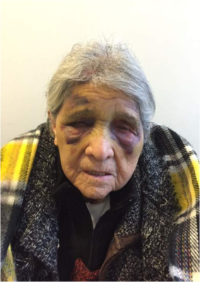 Paciente de 75 años, con antecedentes de DM2 e HTA, es llevada al servicio de urgencias por caer varios peldaños de la escalera. Al examen físico se observa la imagen adjunta.