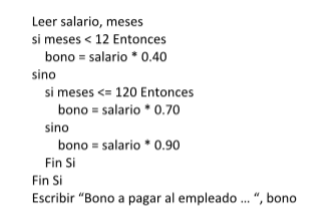 A partir del algoritmo mostrado, seleccione un arreglo de estructuras condicionales